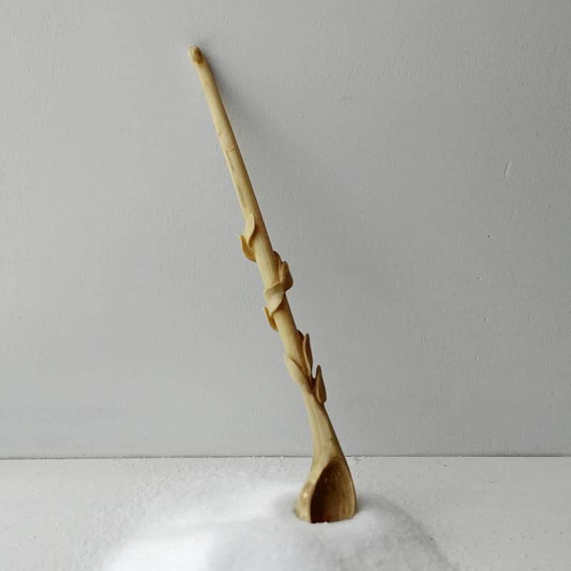 Handgesneden kleine lepeltjes voor zout of suiker. Niet alleen om te gebruiken, maar vooral ook om naar te kijken! Gemaakt van takken van de roos uit mijn tuintje. Of van snoeihout van de appelboom of buxussen.